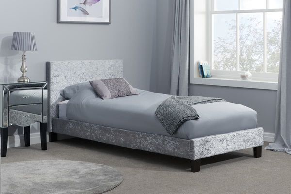 Available in a choice of silver or black crushed velvet, either of these neutral tones can blend in perfectly with any bedroom decor.